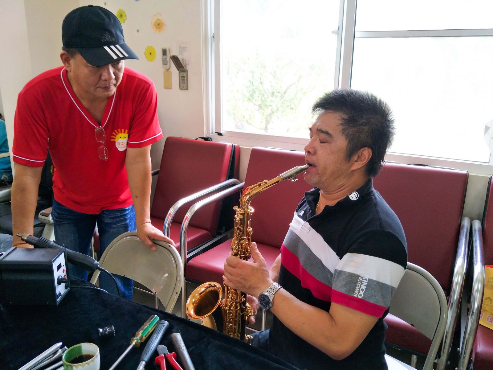 而且是到各大的老人院、育幼院演奏薩克斯風